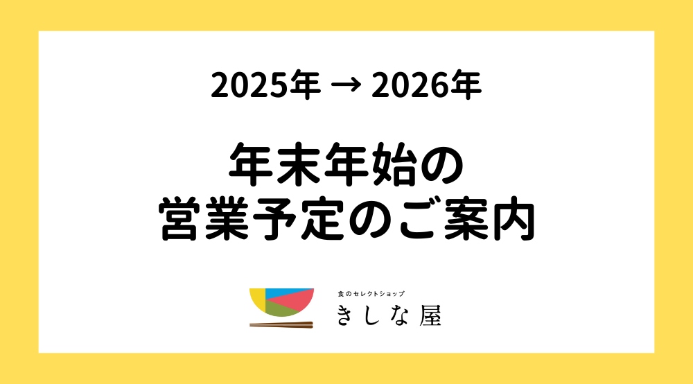 きしな屋各店舗の年末年始の営業予定は下記の通りです。