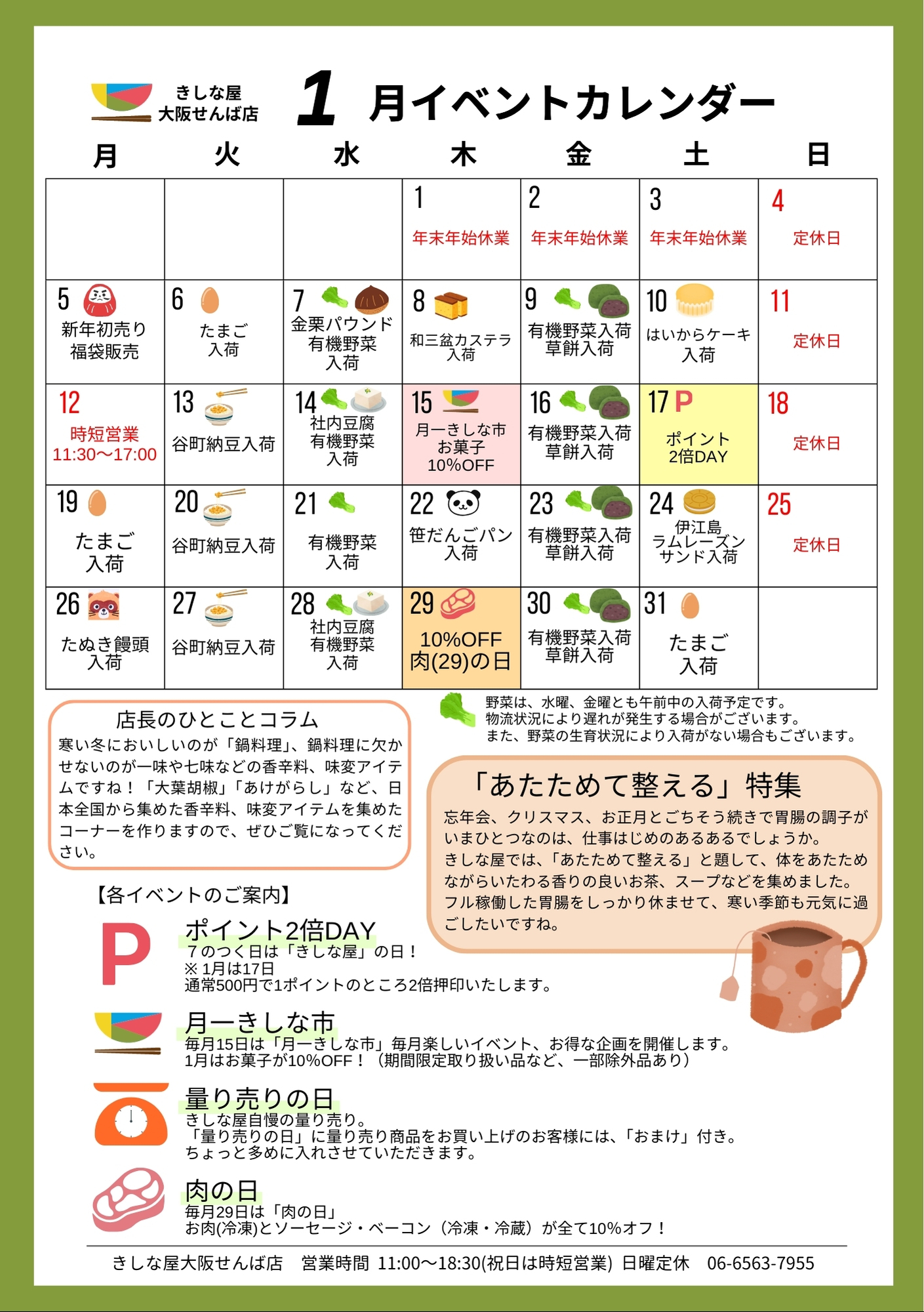 ほんまち店、大阪せんば店の1月のイベントをお知らせいたします。