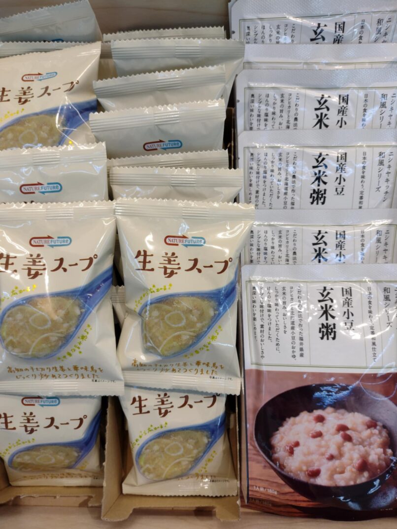 レンジであたためるだけでほっこり「小豆玄米粥」「豚バラ大根の生姜スープ」「人参のポタージュ」