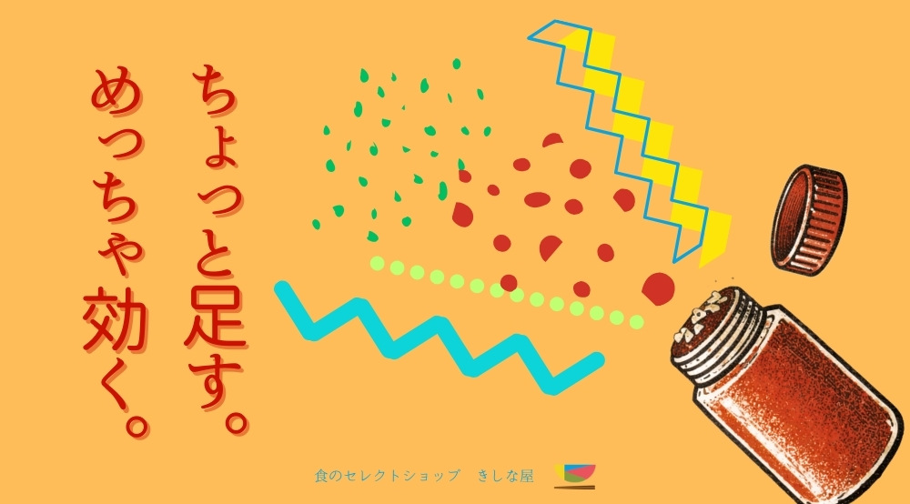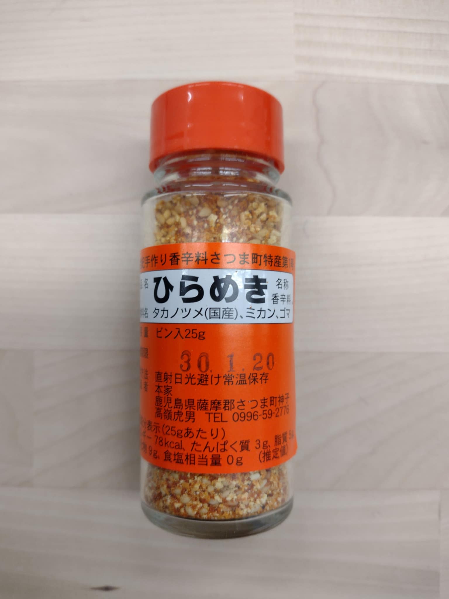 七味や一味もいろいろ。「ひらめき」なんてい鹿児島のめずらしい香辛料もありますよ。
